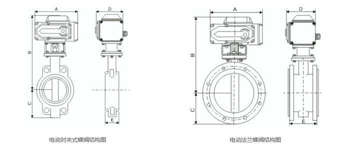 電動對夾式蝶閥與電動法蘭蝶閥的區別: